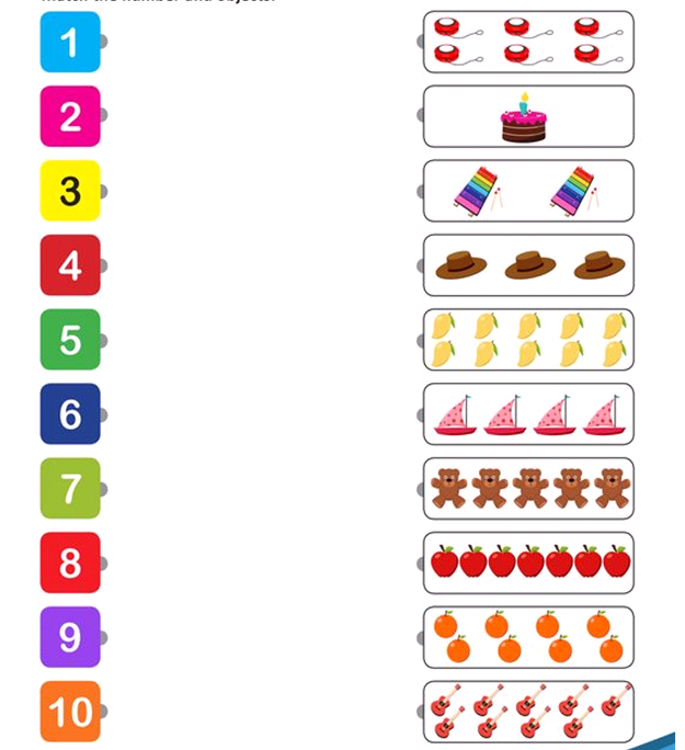 3.Bé hãy đếm và nối vào các số lượng tương ứng vào  bức tranh