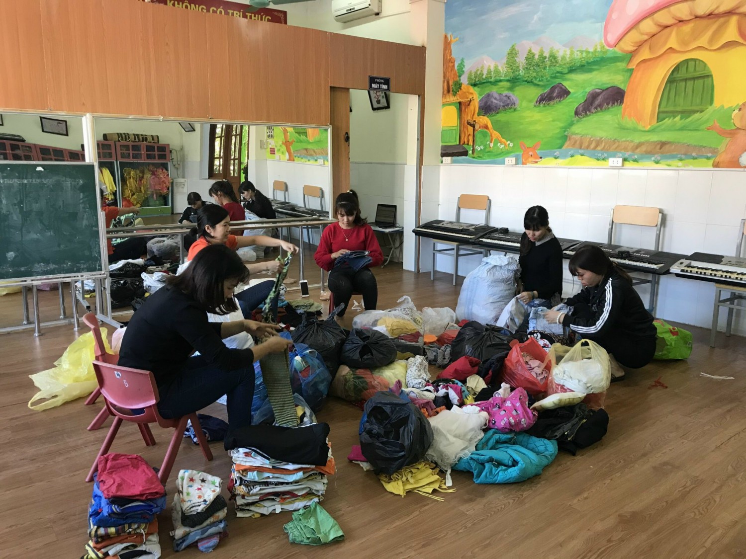 Với ý nghĩa “Hạnh phúc là sẻ chia” Công đoàn trường Mầm non Ánh Dương đã phát động phong trào làm từ thiện, được 100% CB-GV-NV và phụ huynh, học sinh trong toàn trường hưởng ứng nhiệt tình. Sau ngày phát động, những thùng quần áo ấm, giày dép được đóng gói gọn gàng, cẩn thận đưa về nơi tập kết.