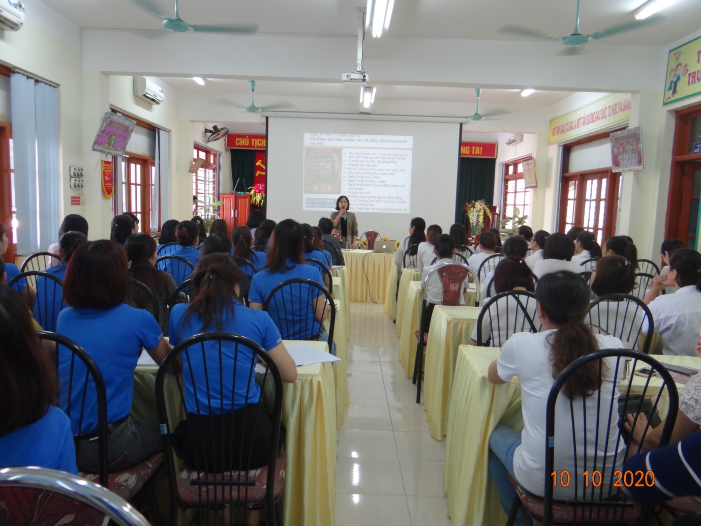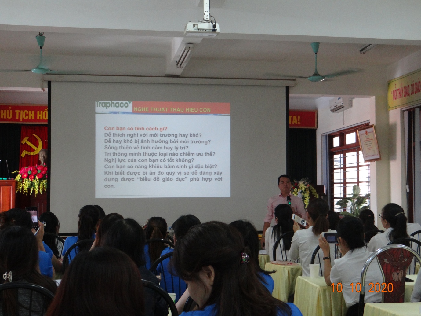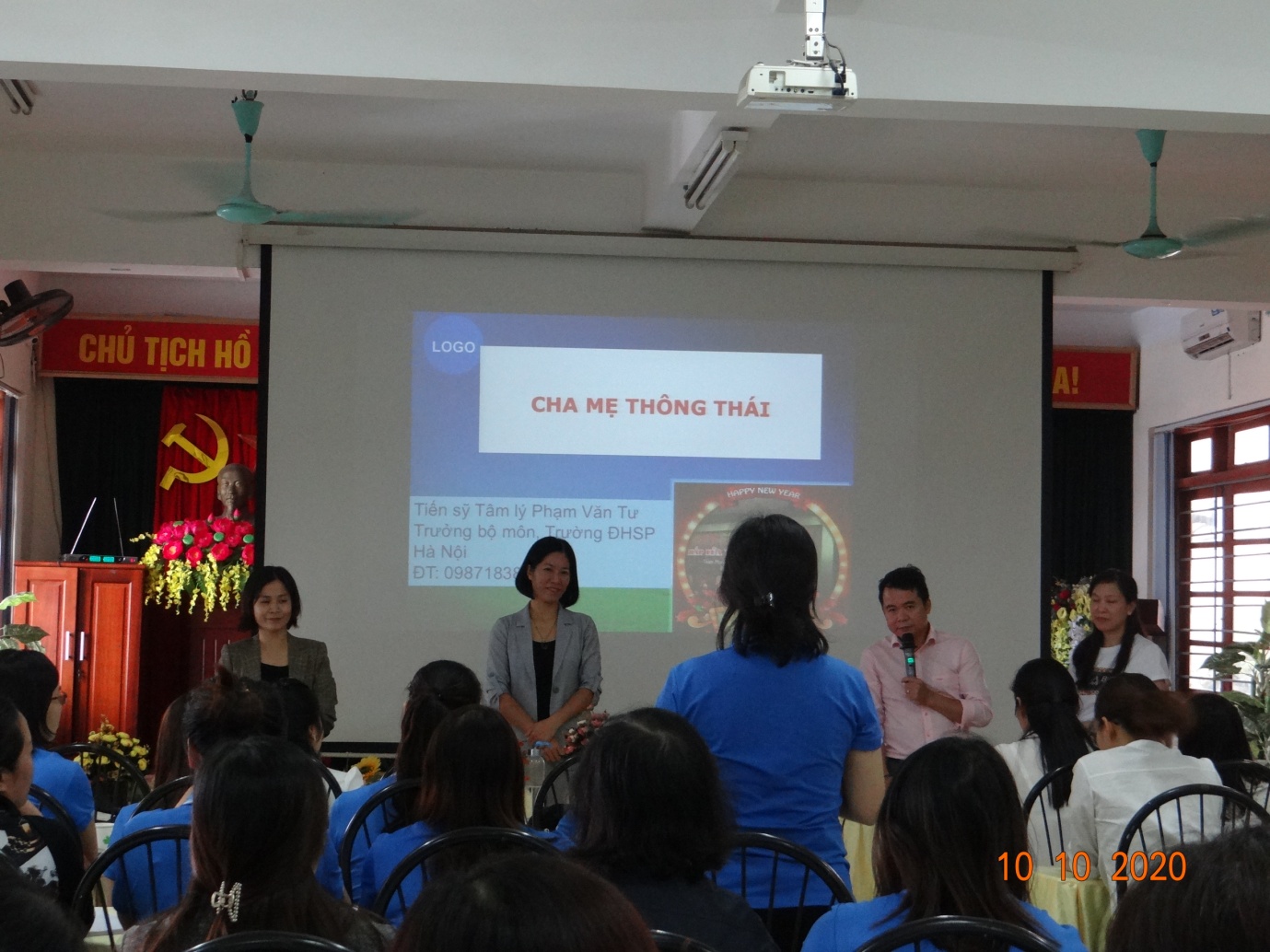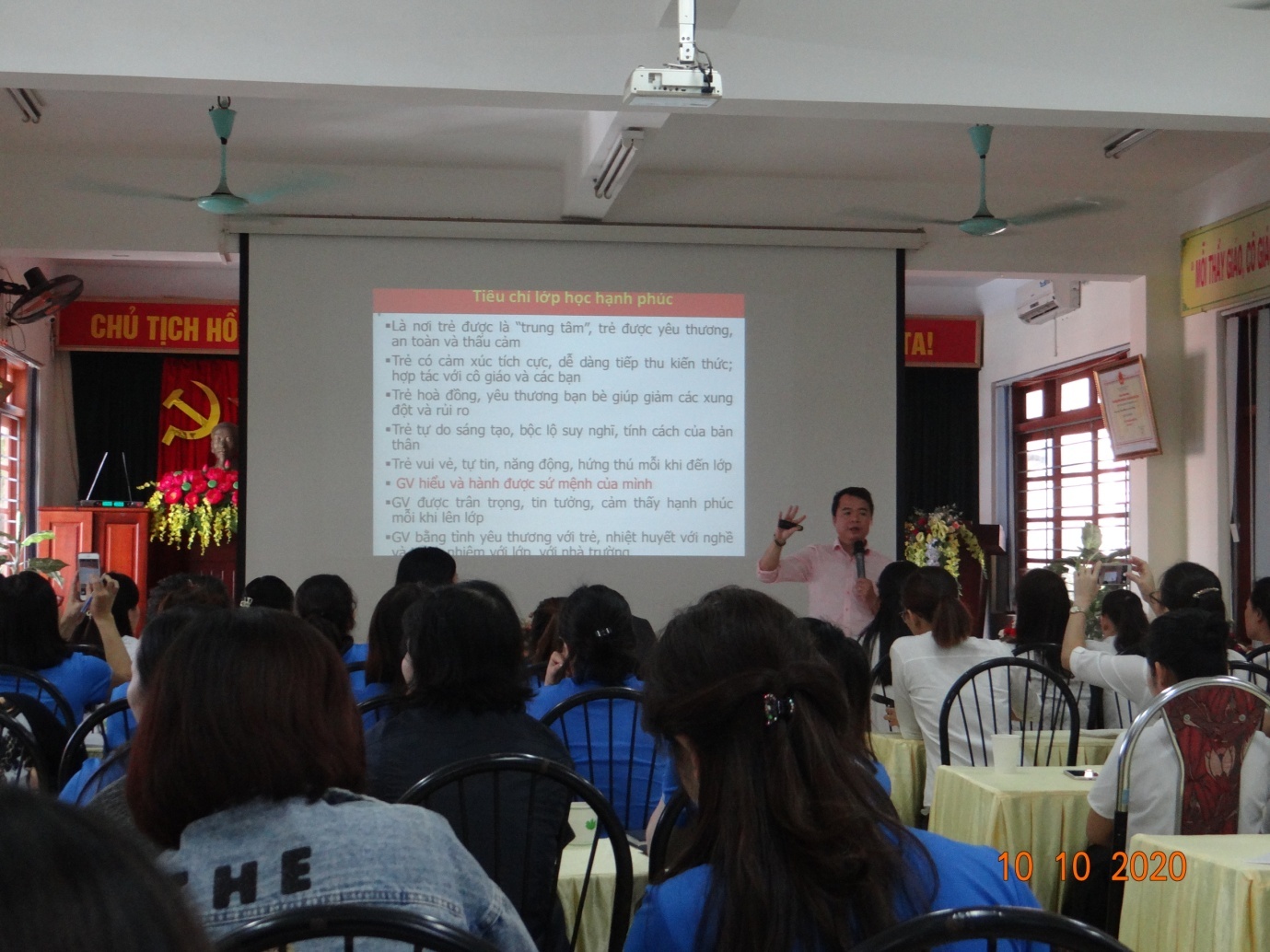 Giáo viên mầm non là người giữ vị trí đặc biệt quan trọng trong việc hình thành nhân cách đạo đức trẻ, có nhiệm vụ chăm sóc, nuôi dưỡng và giáo dục giúp trẻ phát triển toàn diện. Chính vì vậy, hoạt động bồi dưỡng chuyên môn, nâng cao kỹ năng sư phạm cho đội ngũ là một trong những nhiệm vụ trọng tâm của trường Mầm non Ánh Dương và cũng nhằm góp phần thực hiện thành công mục tiêu “Thực chất, hiệu quả xây dựng trường, lớp mầm non Hạnh Phúc”. Ngày 10/10 vừa qua, giáo viên trường Mầm non Ánh Dương được lắng nghe những chia sẻ từ Thầy giáo, tiến sỹ Phạm Văn Tư- trưởng bộ môn Tâm lý xã hội Đại học Sư Phạm Hà Nội. Thầy đã giúp chúng tôi hiểu được cốt lõi của Đạo Đức nhà giáo, nền tảng sâu xa của việc xây dựng trường, lớp mầm non Hạnh Phúc. Thầy đưa chúng tôi vào những bài khởi động vui vẻ giúp chúng tôi có thật nhiều năng lượng và đặc biệt cười thật vui để cảm sâu hơn ý nghĩa của Hạnh Phúc. Thầy giúp chúng tôi hiểu các cô giáo phải hạnh phúc thì mới tạo nên được một “Trường, lớp học hạnh phúc”. Chúng tôi được lắng nghe những kiến thức về nghệ thuật kỉ luật đối với trẻ mầm non, hiểu được giá trị của chúng đem lại cho đứa trẻ. Một ngày học kết thúc, chúng tôi thu nạp được nhiều kiến thức quý giá, hiểu sâu sắc hơn vai trò của mình đối với từng trẻ ở lớp, và rộng hơn là đối với kết quả giáo dục của nhà trường, của cấp học.